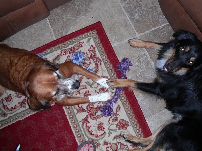 I am fascinated by their stamina, agility, and power. This dog has taught me a lot of things, such as how to be a strong "master" or this dog will run all over you, literally. We had a few tense moments when I had to assert myself as "A" dog over him, but I will share those moments with you later. Once I had passed the test and Howdy had been reminded that Mama Rules, all was well in the house. And, for the most part, a happy house we've had with Howdy.