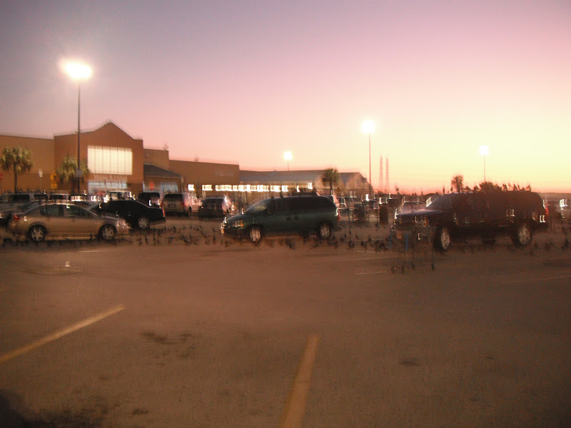 So, you'll also understand how the scene in the photos below were very eerie as Deputy Dave and I walked out of Walmart. These crows were surrounding us. I could only get in a snapshot of one area at a time, but these birds could NOT be scared away. People were honking their horns, sounding their car alarms, waving their arms and yelling...nothing made the birds move. It was freaky, scary.